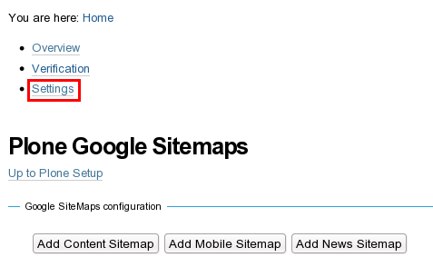 - Go to your Plone Site Setup -> Add-on Product Configuration -> Google Sitemaps