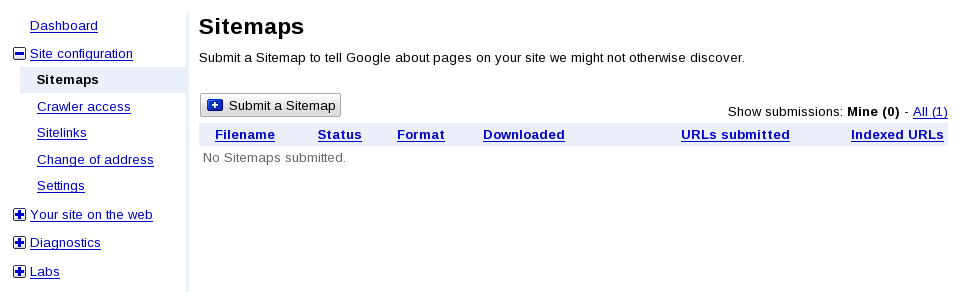 - Click the Submit a Sitemap button