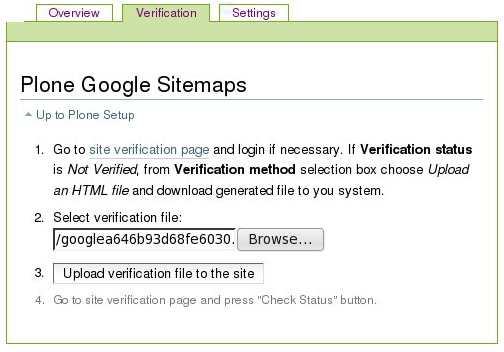 - Add your Plone site to your Google account, e.g. http://www.plone-site.com