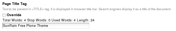 All SEO properties listed below can be overridden be checking Override boxes next to the corresponding tag.